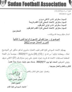واجرت المسابقات تعديلا في مباراة توتي واهلي مروي باقامتها ليلا بينما تظل مباراة اهلي شندي والهلال في الرابعة عصرا وعلى ذات الملعب.
