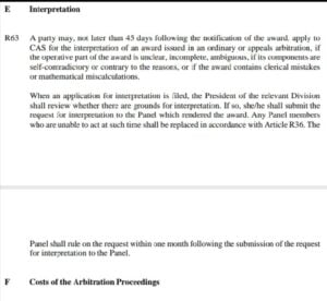 لذلك نصحت الإتحاد باللجوء إلى كاس مجدداً بتقديم طلب إستناداً إلى CAS Cod R63. حيث تتيح القواعد الإجرائية للأطراف طلب العون التفسيري للقرار، إذا استشكل فهمه بسبب غموضه، عدم وضوحه، او تعارضه مع المسببات. حيث أن القرار بشكله الحالي يحمل في جوفه نسف شرعية الإتحاد السوداني لكرة القدم.