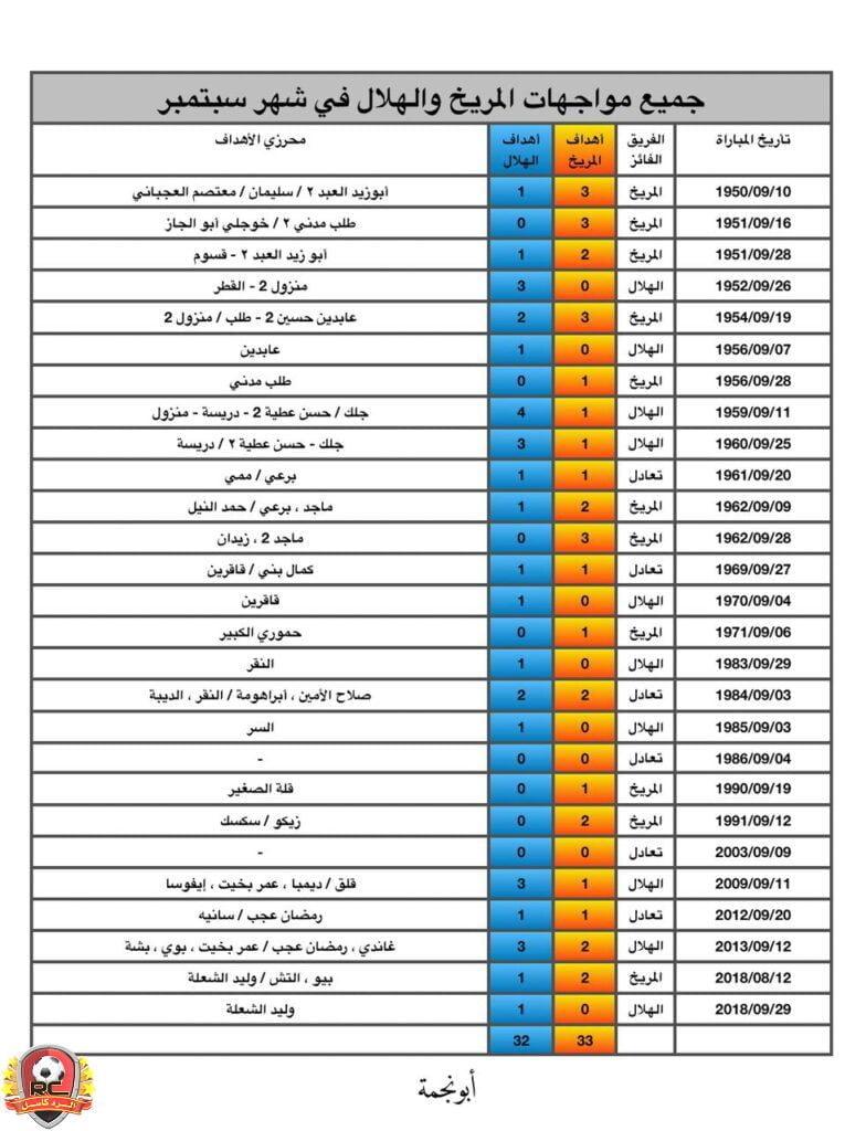 الرصد يشمل جميع المباريات لشهر سبتمبر:
