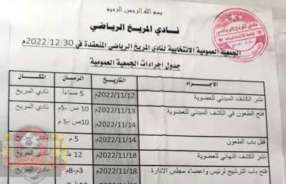 وتشير،المعلومات التي توفرت للرد كاسل ان لجنة الانتخابات قررت نشر الجدول وتعليقه في بورد نادي المريخ ومقر إقامة أعمال الجمعية العمومية المقبلة.