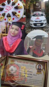 كرمت مدارس الملك فهد يوم أمس السبت الطالبة النابغة رؤى ناصر الداني لإحرازها المركز الاول على مستوى المدرسة بدرجة 95.3% في امتحانات الشهادة السودانية وكان التكريم برعاية قناتي النيل الازرق وقناة البلد وتسليمها سيارة شيفروليه جديدة وسط الأهل والاصدقاء والأقارب وبرفقة والدها ناصر الداني ووالدتها وجدها اللواء الدكتور شرطة مأمون السيد الذي القى كلمة معبرة وضافية في الحفل شكر من خلالها مدارس الملك فهد على هذا الاحتفال وتمنى ان يحتفلوا العام القادم باول الشهادة الثانوية ليكون من نفس المدرسة ان شاء الله.
