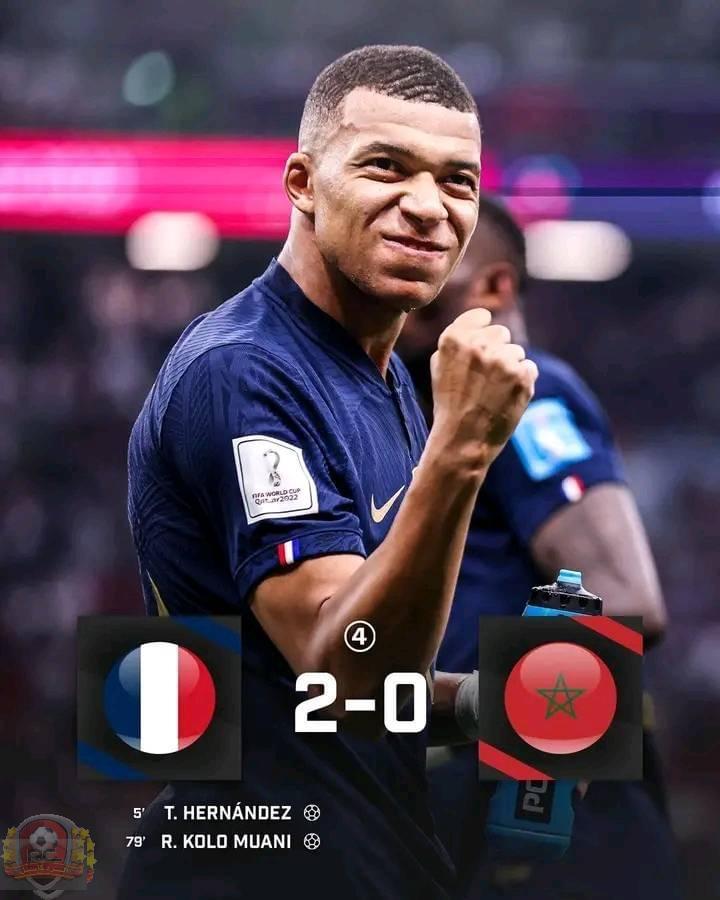 وواصل المنتخب الفرنسي، حملة الدفاع عن اللقب، ليتأهل للمباراة النهائية للمرة الثانية على التوالي، وسيواجه الأرجنتين في المباراة النهائية الأحد المقبل على ستاد لوسيل.
