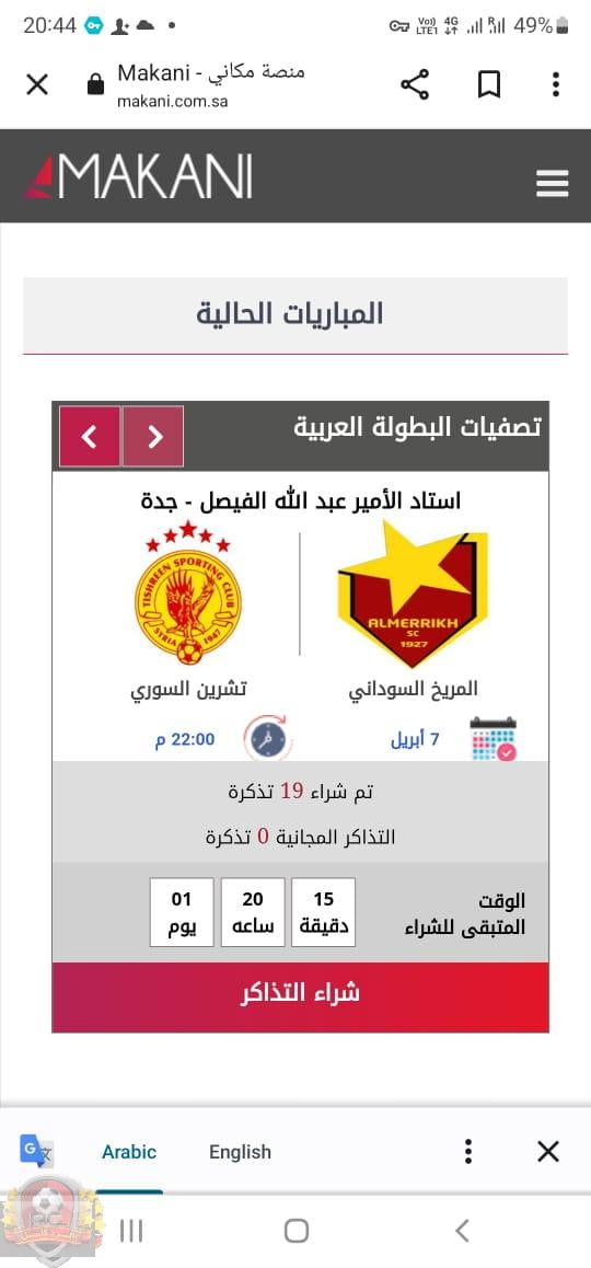 وحسب متابعات الرد كاسل فان جماهير المريخ سارعت الخطى لشراء تذكرة مباراة الفريق امام نظيره السوري عبر تطبيق مكاني الالكتروني.