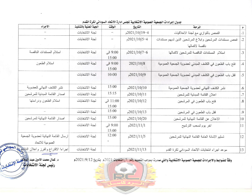 الرد كاسل تنشر الجدول الرسمي لانتخابات الاتحاد العام لكرة القدم نوفمبر المقبل