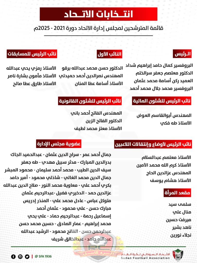 الرد كاسل ينشر قائمة المترشحين لمجلس ادارة الاتحاد دورة 2021 – 2025