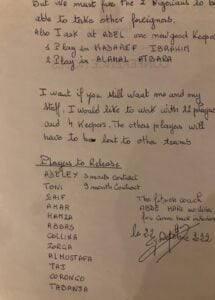 وتشير الوثيقة إلى تقرير فني للمدرب الفرنسي وذلك لتوفيق أوضاع الفريق الفنية في فترة التسجيلات الثانية والتي تلت الفترة التي تلت قيد وتسجيل عدد من اللاعبين.