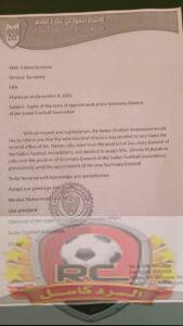 وجاءت في رسالة مجلس إدارة اتحاد الكرة أنه قرر اعفاء الدكتور حسن ابو جبل وتعين غادة مبارك بدلا عنه وبالتالي تنتهي صلاحية اعتماد توقيعات ابو جبل في مراسلاته مع الفيفا والاتحاد الأفريقي والجهات الرسمية المحلية.