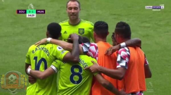 وذهب فيرنانديز ولاعبو مانشستر يونايتد للاحتفال بالهدف مع كريستيانو، الذي يتواجد اليوم ضمن مقاعد البدلاء.