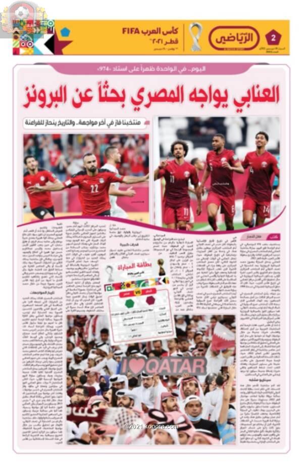 سلطت الصحف الجزائرية والتونسية والقطرية والمصرية، الضوء على اليوم الختامي لكأس العرب 2021.