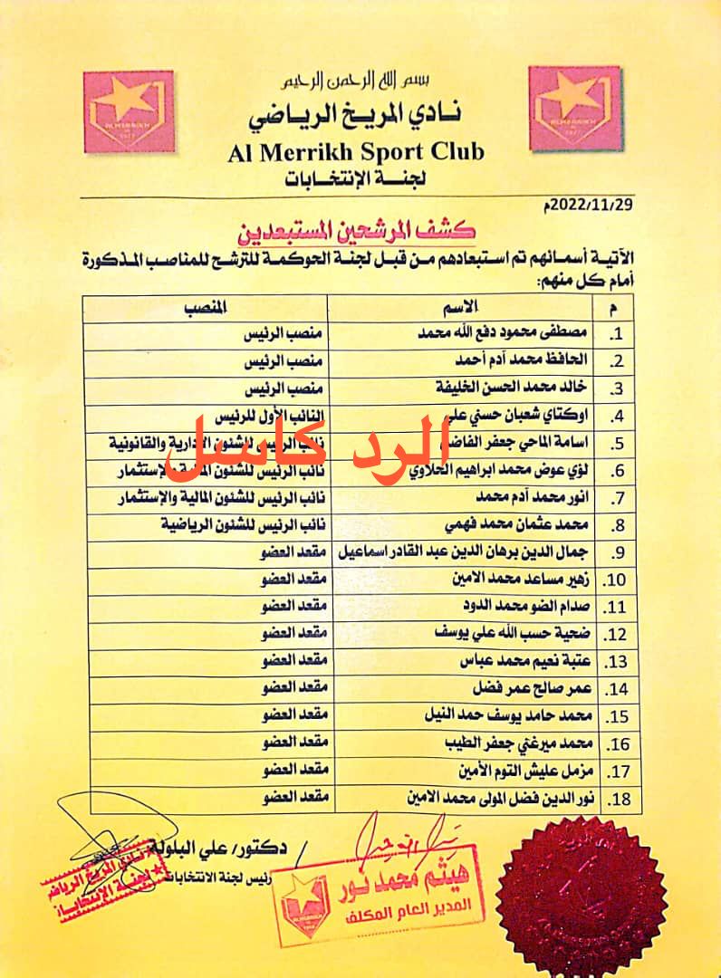 بسم الله الرحمن الرحيم لجنة الانتخابات بيــــان … إستلمت لجنة الانتخابات بنادي المريخ مساء اليوم الثلاثاء ٢٩ نوفمبر ٢٠٢٢ اعمال لجنة الحوكمة بالنادي فيما يتعلق بفحص النزاهة والاخلاقيات لجميع المرشحين لمناصب مجلس ادارة نادي المريخ المزمع إجراؤها في ٣٠ ديسمبر القادم .. وعندما تسلمت اللجنة ارانيك الفحص تمت افادتها من …