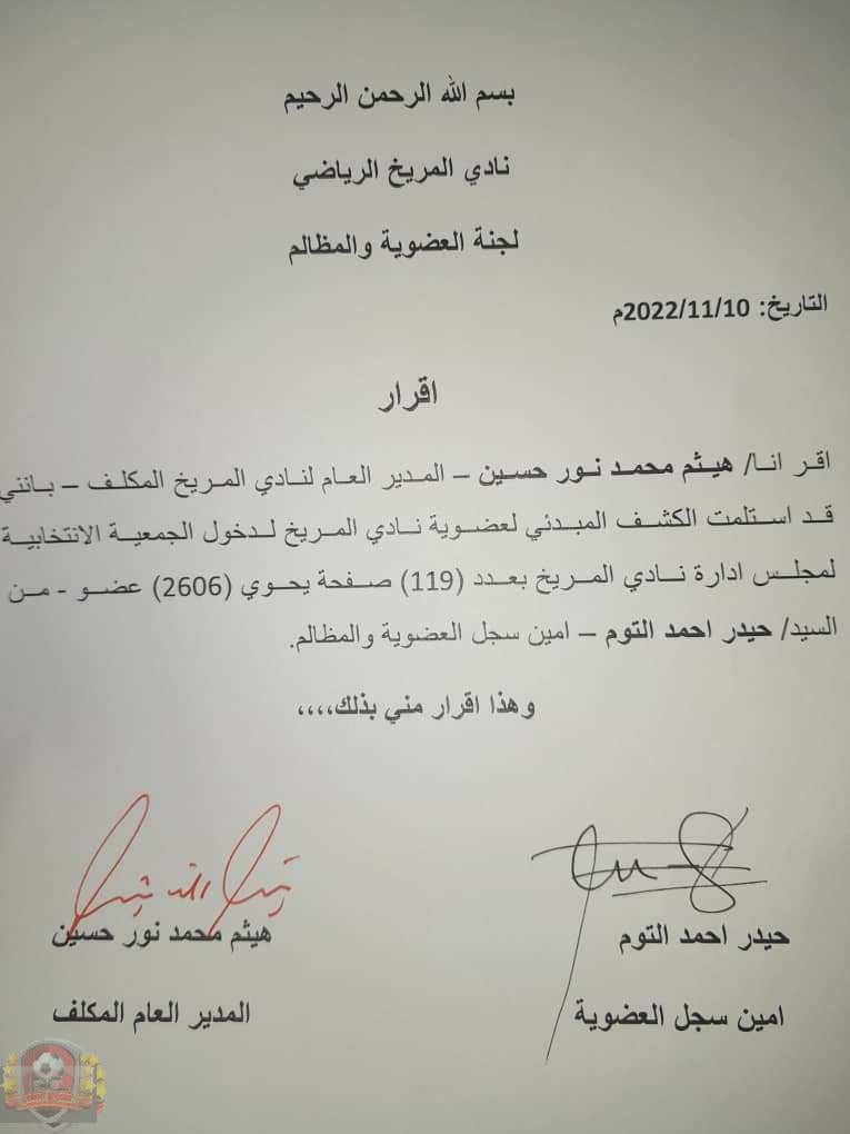 أكمل القراءة »تأكيدا لانفراد الرد كاسل لجنة العضوية تسلم السجل الانتخابي ورئيسها يشكر الجميع